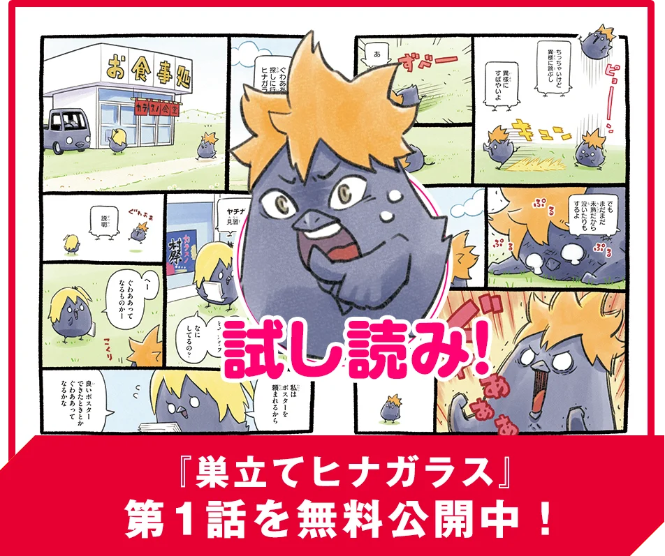 大人気マンガ『ハイキュー!!』のハイでキュートなマスコット(?)・ヒナガラスたちが登場!! 可愛くて不思議な生態を描く〝ゆるぐわ〟公式スピンオフ!!